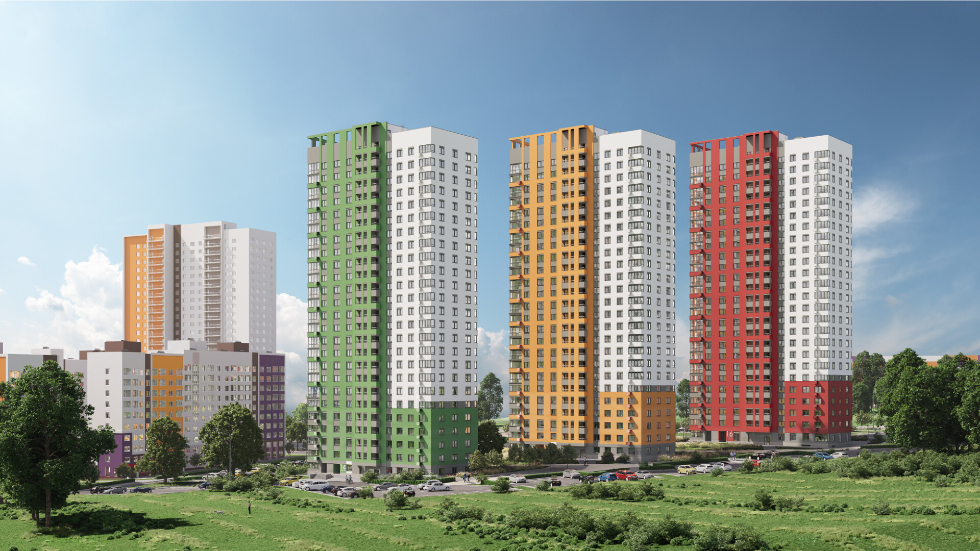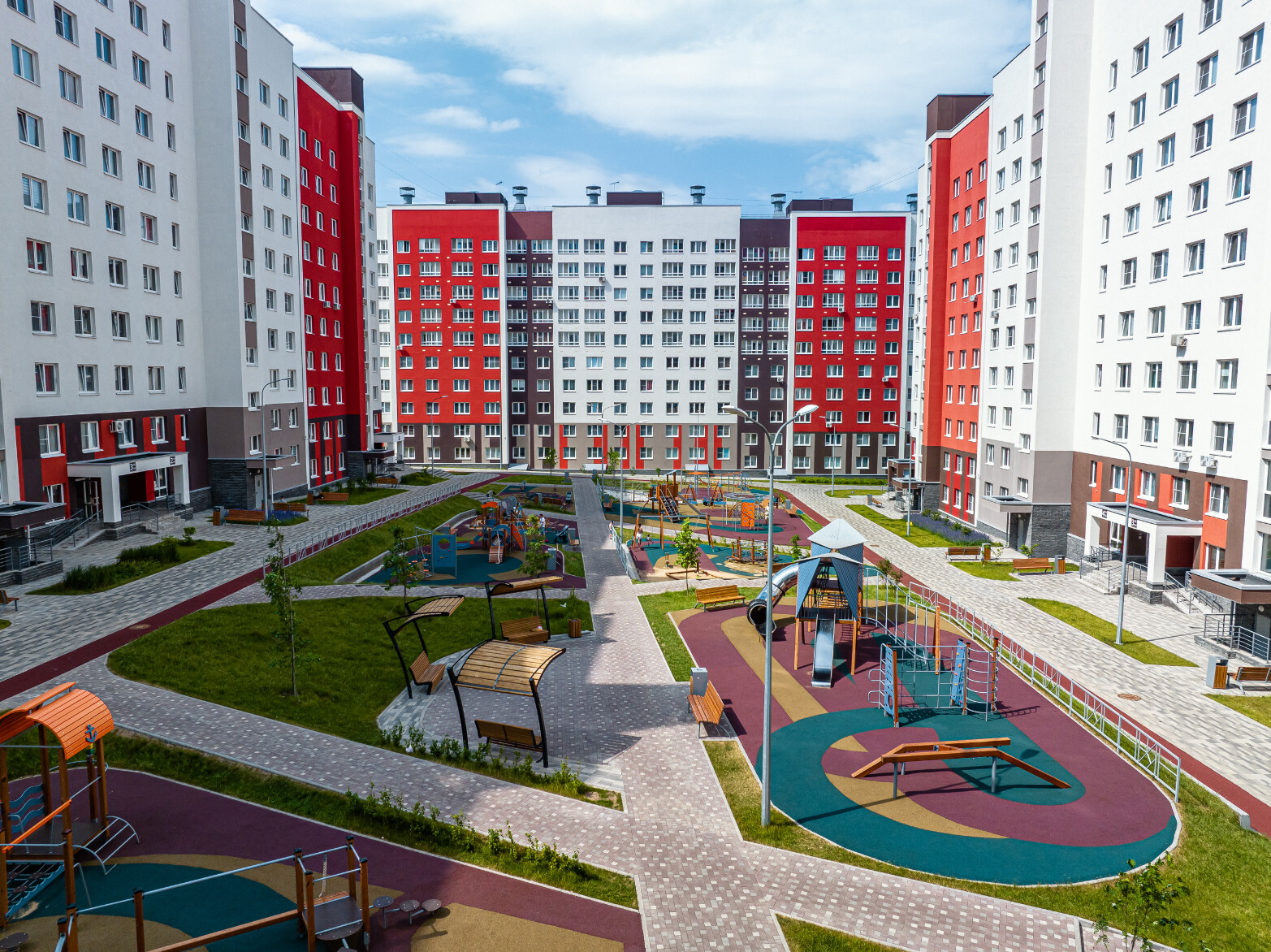 1-я очередь застройки включает в себя 12 кварталов. Это 37 домов разной этажности. Все дома уже построены и заселены.