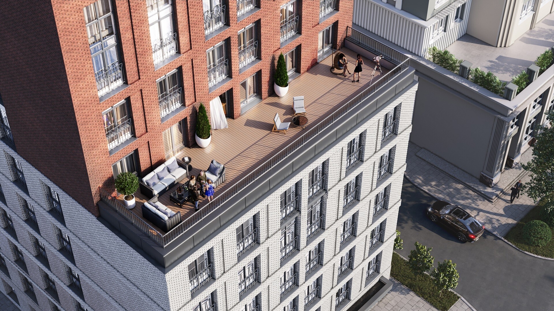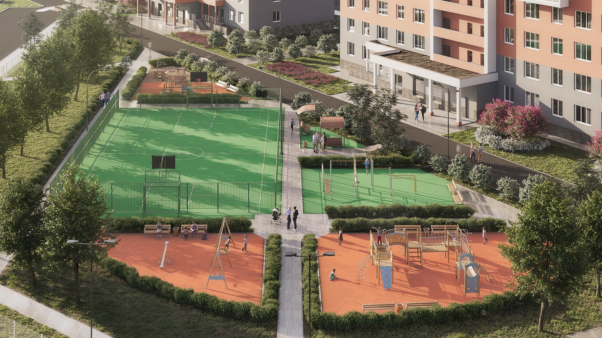 Проект ориентирован на семейную аудиторию, поэтому особое внимание уделяется благоустройству и формированию соответствующей инфраструктуры.