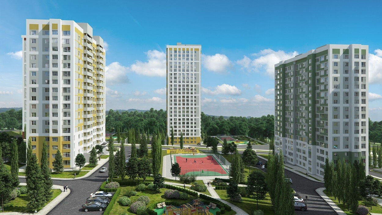 Ассортимент квартир: от студий до 4-комнатных квартир.